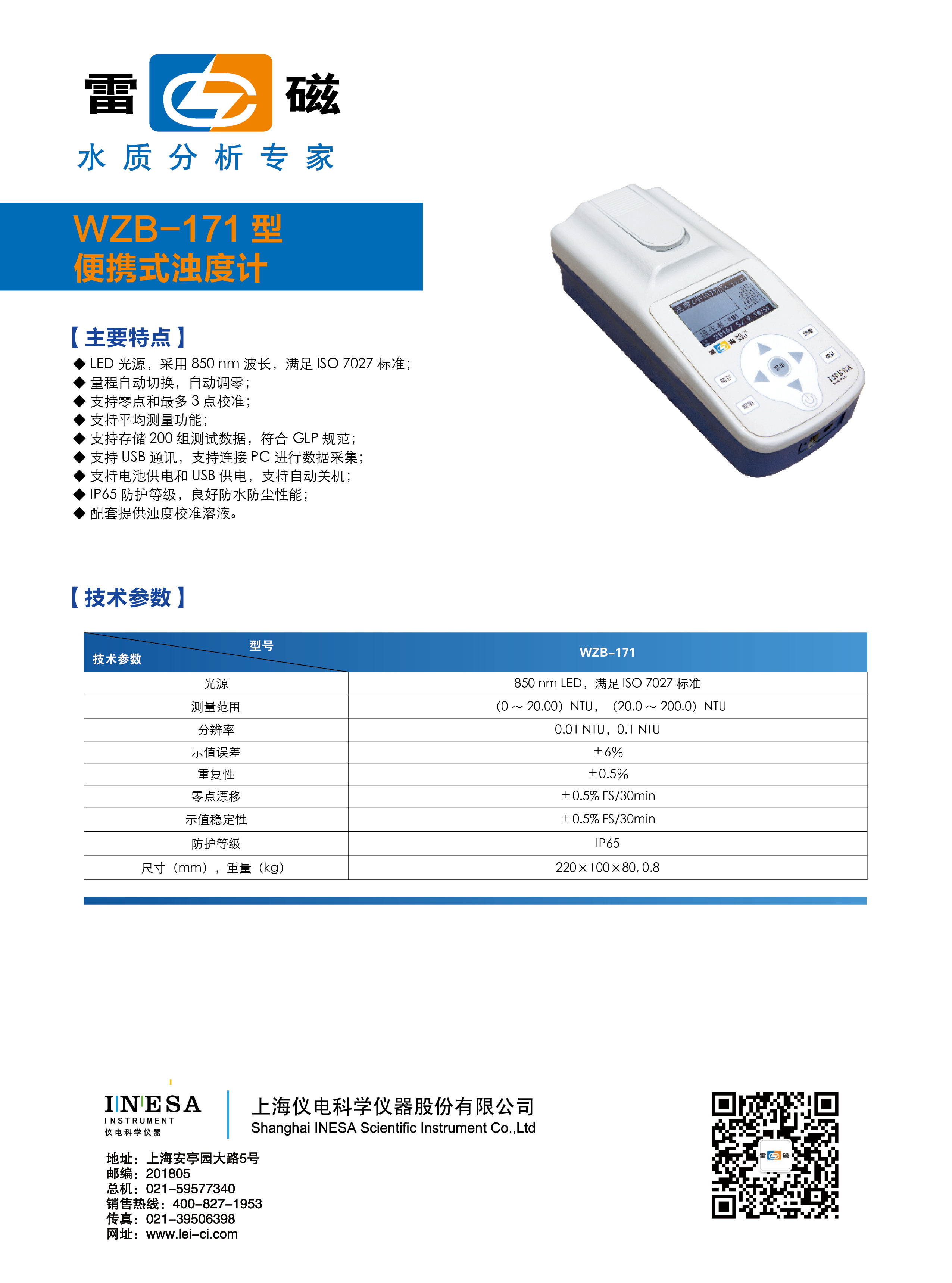 測量范圍 | (0~20.00)NTU,(20.0~200.0)NTU |