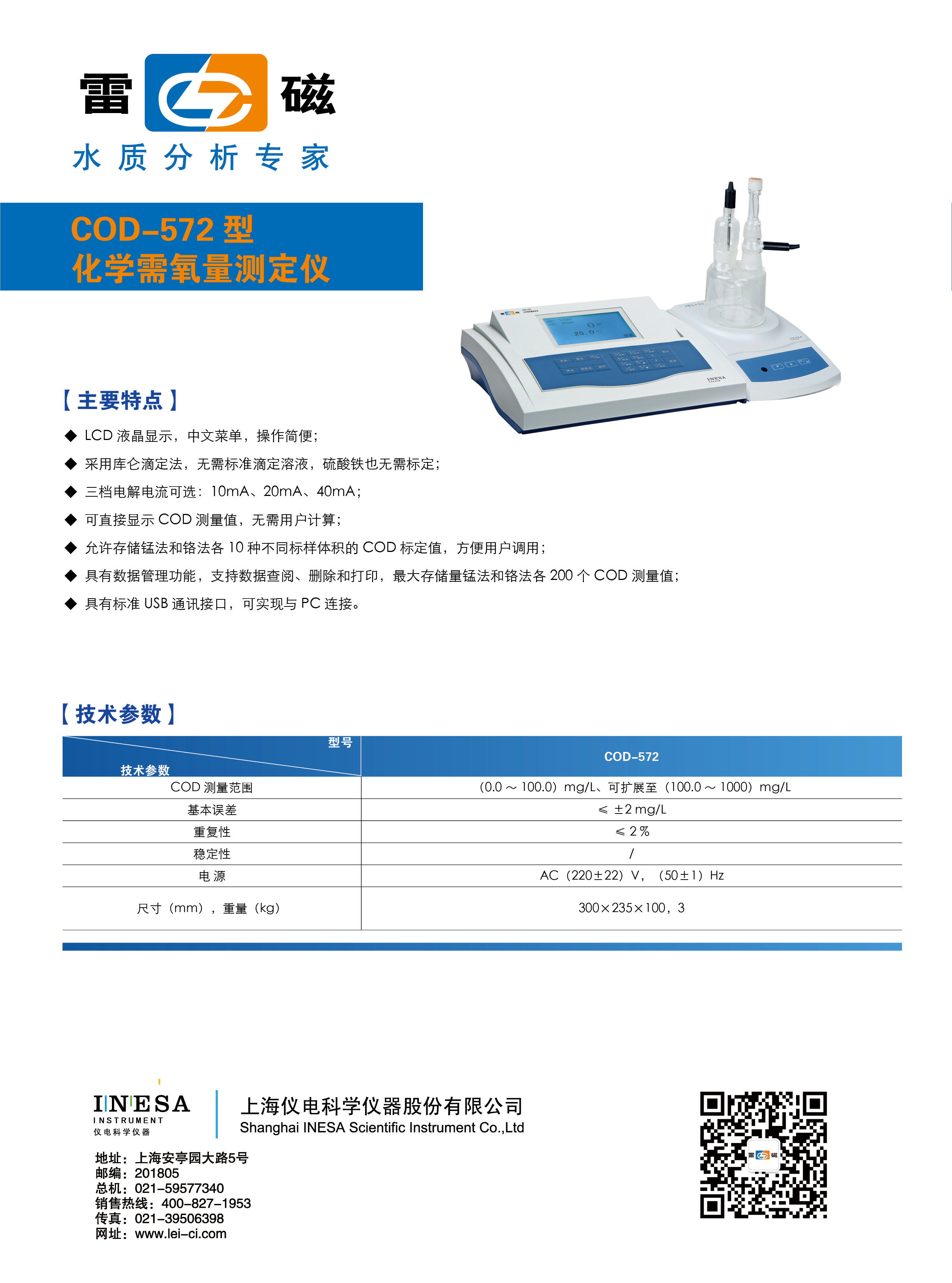 ※ 具有數(shù)據(jù)管理功能,支持數(shù)據(jù)查閱、刪除和打印,最大存儲量錳法和鉻法各200個COD測量值;